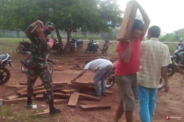 Babinsa Kendawangan Bersama Warga Gotong Royong Pembangunan Masjid Nurul Khoir