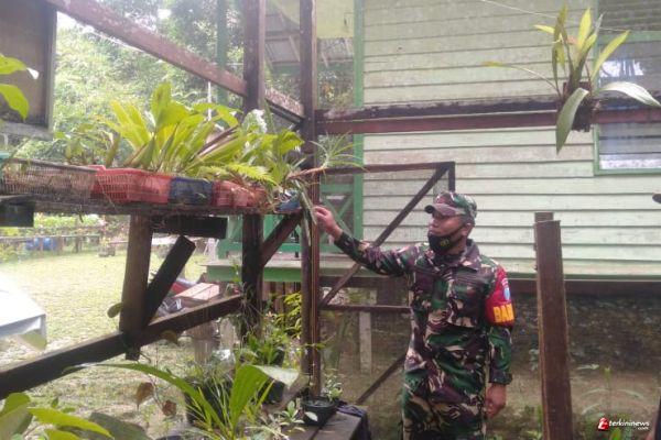 Putussibau – Babinsa Koramil 06/Putussibau Utara Kopda Teriadi melaksanakan komunikasi sosial dengan warga binaan pengelola tanaman hias jenis Anggrek di kediaman Pak Heri, Desa Tanjung Karang, Kecamatan Putussibau Utara, Rabu (02/06/2021).