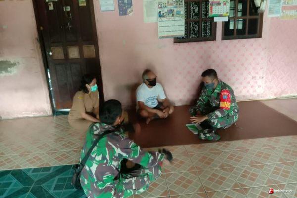 Babinsa Sertu Supari menyambangi kediaman bapak Antonius Linggat di Desa Pukau Manak , Kecamatan Embaloh Hulu, Kabupaten Kapuas Hulu, Sabtu (05/06/2021).