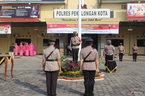 Kapolres Pekalongan Kota Polda Jawa Tengah AKBP M Irwan Susanto , S.I.K, SH,MH, memimpin upacara serah terima jabatan Kapolsek Pekalongan Utara, Senin (08/06/2021) pagi di halaman depan Mapolres Pekalongan Kota.