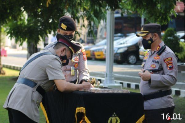 Polres Kendal laksanakan upacara Sertijab untuk beberapa Kapolsek yang dilaksanakan di halaman Mapolres Kendal pada hari Senin 7/6/2021.
