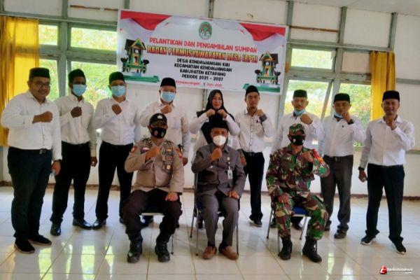 Dalam kesempatan tersebut Babinsa Kendawangan Kiri Sertu Joni Kusnadi mengucapkan selamat atas pelantikan ketua beserta anggota BPD yang baru.