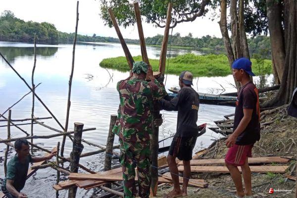 Embaloh Hilir - Untuk meningkatkan sistem keamanan di masyarakat Bintara Pembina Desa (Babinsa) Koramil 1206 - 01/Embaloh Hilir, Praka Junaidin melaksanakan Komunikasi Sosial (Komsos) dengan tokoh masyarakat dan mengaktifkan kegiatan pos kamling, serta mengajak warga binaannya membuat pos Pengamanan di lingkungan Danau Bungkang, Desa Nanga Embaloh , Kecamatan Embaloh Hilir, Kabupaten Kapuas Hulu, Senin (07/06/2021).