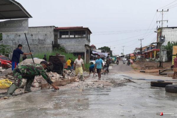 Dalam upaya mengurangi resiko terjadinya kecelakaan lalu lintas yang di sebabkan kerusakan jalan, Babinsa Koramil 1203-06/Manismata bersama masyarakat gotong-royong perbaikan jalan di Desa Manismata, Kecamatan Manismata, Kabupaten Ketapang. Selasa (8/6/2021)
