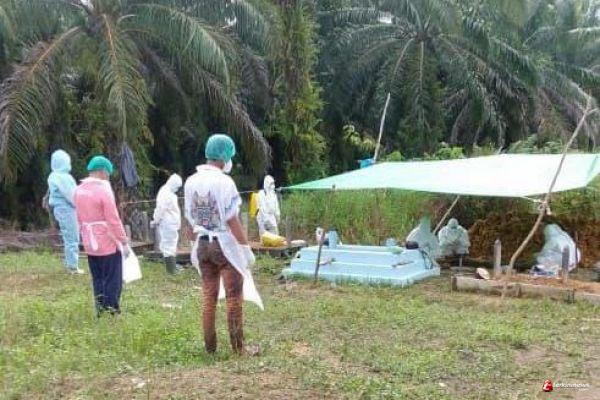 Silat Hilir - Babinsa koramil 1206 - 11/Silat Hilir, Praka Saga bersama Tim Satgas Covid-19 Silat Hilir melaksanakan pendampingan prosesi pemakaman salah seorang warga yang meninggal karena terpapar Covid-19 di Kecamatan Silat Hilir, Kabupaten Kapuas Hulu, Senin (07/06/2021).