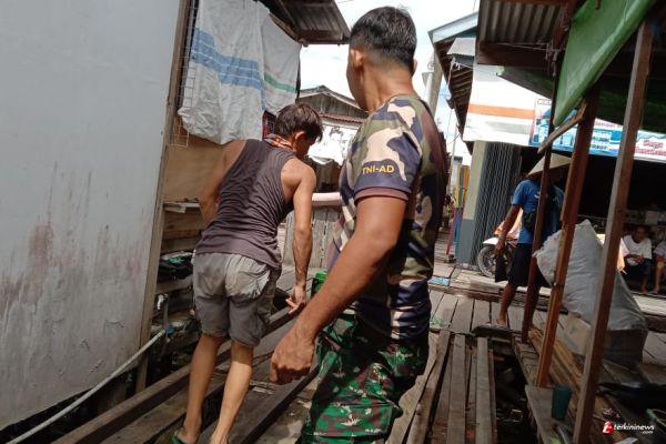 Babinsa Bantu Perbaiki Jembatan Di Desa Binaan