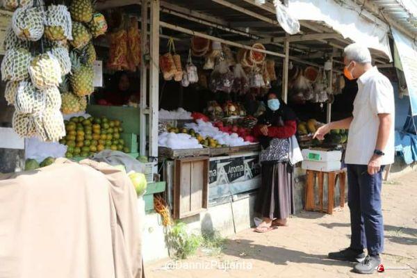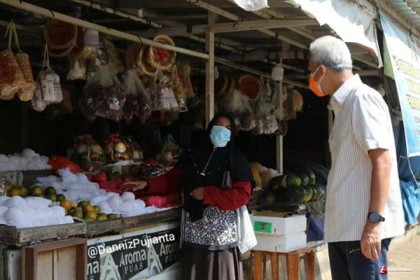 Saat Ganjar berjalan melihat kondisisi pasar, Ganjar melihat Sumiyati yang sedang belanja buah. Saat itu, Sumiyati mengenakan masker dengan benar dan menjaga jarak.