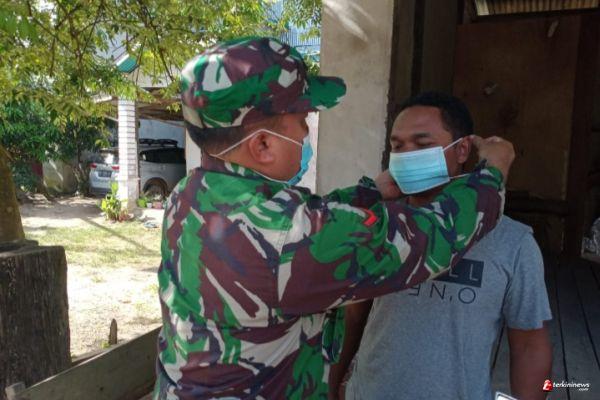 Dalam kegiatannya selain monitoring wilayah yang menjadi tanggung jawabnya, Babinsa juga melakukan edukasi protokol kesehatan guna mencegah penularan dan penyebaran virus covid-19 serta membagikan masker gratis.