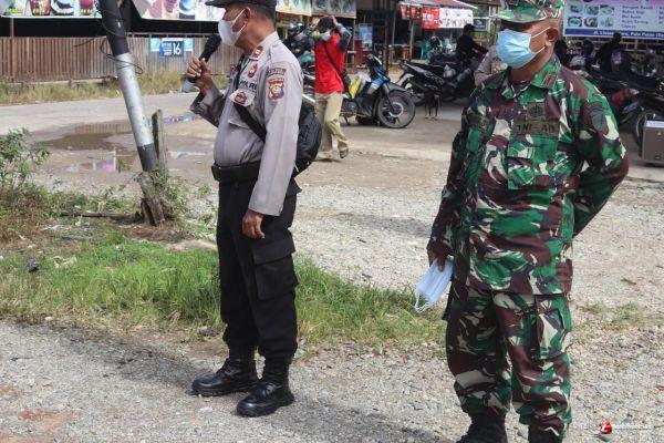 Dalam hal ini Koramil 1206 - 06/Putussibau Utara bersinergi dengan Polsek Putussibau Utara melaksanakan patroli gabungan pendisiplinan protokol kesehatan di Jl. Lintas Utara, Simpang 4 Desa Pala Pulau Kecamatan Putussibau Utara, Kabupaten Kapuas Hulu, Senin (14/07/2021).