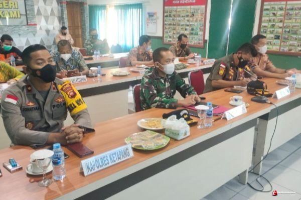Dandim 1203/Ktp Letkol Kav Suntara Wisnu Budi Hidayanta, SH, M.Sc bersama Jajaran Forum Komunikasi Pimpinan Daerah (Forkopimda) Kabupaten Ketapang mengikuti rapat evaluasi pelaksanaan satuan tugas penanganan Covid-19 di perbatasan wilayah Kalimantan Barat dan PPKM Skala Mikro Provinsi Kalimantan Barat, bertempat di, Makodim 1203/Ktp. Jum'at (18/6/21).