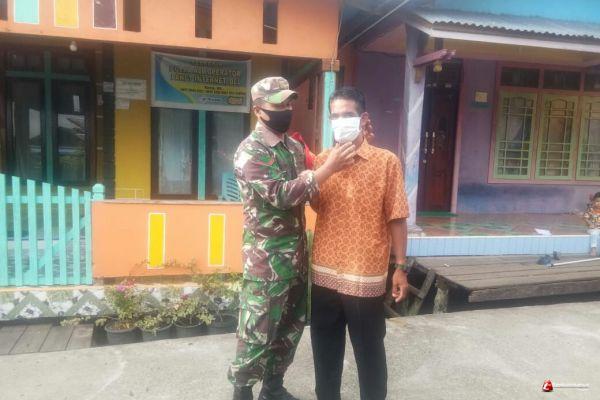 Sambangi Rumah Warga Binaanya, Babinsa 08/Bunut Hilir Bagikan Masker Door to Door