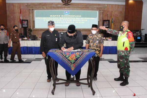 TEGAL - Pemerintah Kota Tegal bersama para tokoh agama Kota Tegal sepakati pelaksanaan kegiatan keagamaan pada masa Pemberlakukan Pembatasan Kegiatan Masyarakat (PPKM) Darurat Jawa-Bali di Kota Tegal.