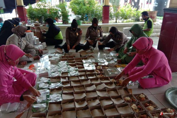 TEGAL - Kapolres Tegal Kota AKBP Rita Wulandari Wibowo, SIK MH turun langsung dalam kegiatan dapur umum yang didirikan di Halaman Masjid Al Amin Polres Tegal Kota. Dapur umum tersebut kegiatannya yaitu menyiapkan makanan siap saji untuk dibagikan kepada warga yang sedang isolasi mandiri akibat virus COVID-19 dimasa pemberlakuan PPKM Darurat, Minggu (11/7/2021).