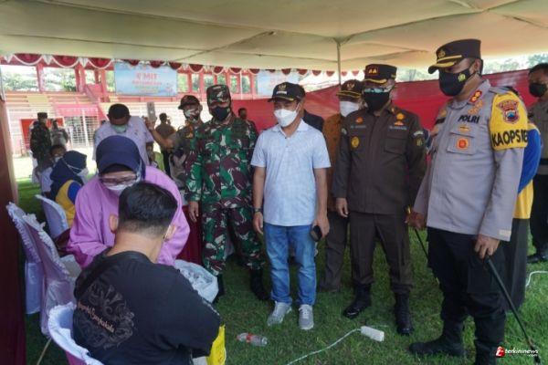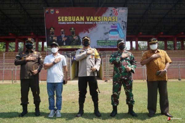 Kapolres Batang AKBP Edwin Louis Sengka didampingi Bupati Batang Wihaji dan Dandim 0736/Batang Letkol Arh Yan Eka Putra meninjau langsung dalam pelaksanaan vaksinasi dosis kedua.