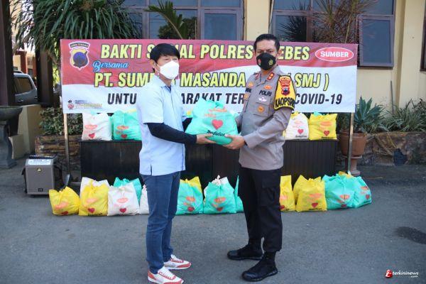 BREBES – 1000 Paket Sembako disalurkan PT SMJ (Sumber Masanda Jaya) bersama dengan Polres Brebes untuk masyarakat yang terdampak Covid -19 di Kabupaten Brebes. Penyerahan bantuan paket sembako secara simbolis langsung oleh Direktur PT SMJ Lee Yeong Sin kepada Kapolres Brebes AKBP Faisal Febrianto di Halaman Mako Polres Brebes, Rabu(28/07/2021).