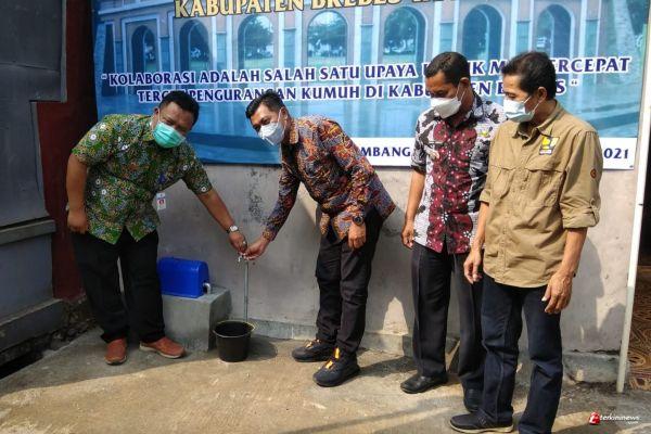 BREBES - Kawasan kumuh di perkotaan Kabupaten Brebes mendapat air bersih dari program reguler Kota Tanpa Kumuh (Kotaku) tahun anggaran 2021. Air bersih terwujud atas sinergi antara Kotaku dan Perumda Air Minum Tirta Baribis dengan menandatangani Memorandum of Understunding (MoU), di Kelurahan Limbangan Wetan, Brebes.