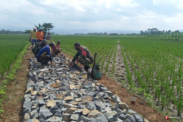 Perlancar Akses Petani, TNI Koramil Majenang Karya Bakti Pengerasan Jalan