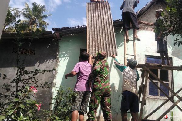 Setelah api dapat dipadamkan, selain membantu memadamkan kebakaran, Babinsa juga membantu perbaikan atap rumah.