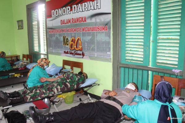 "Seperti kita ketahui di masa pandemi saat ini kebutuhan akan darah meningkat, namun tidak sebanding dengan ketersediaan darah di PMI. Untuk itu bertepatan dengan peringatan HUT ke 60 Korem 071 Wijayakusuma kita menyelenggarakan donor darah dengan melibatkan pendonor dari berbagai instansi baik Kodim, Disjan, Lanal, Polres, Pol PP sampai organisasi masyarakat," katanya.