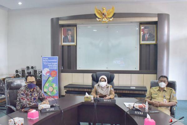 Bupati Tegal Umi Azizah dan Sekretaris Daerah (Sekda) Kabupaten Tegal Widodo Joko Mulyono beserta jajarannya turut hadir mengikuti siaran konferensi video peluncuran MCP dari ruang rapat Sekda.