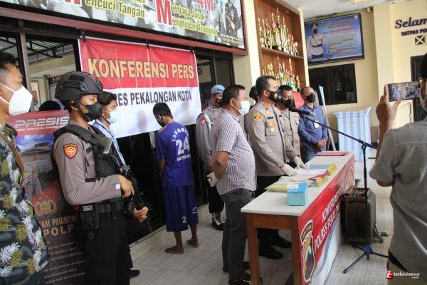 Kapolres Pekalongan Kota AKBP M Irwan Susanto S.I.K., S.H., M.H. Yang didampingi Kasat Reskrim AKP Ahmad Sugeng dan KasiHumas Polres Pekalongan Kota AKP Suparji saat Konferensi Pers, Kamis (02/08/2021) mengatakan, kasus dugaan pencabulan ini terungkap setelah adanya laporan ke polisi. Korban yang merupakan Anak Kandung dari pelaku tersebut, dicabuli berulang kali dirumah pelaku.