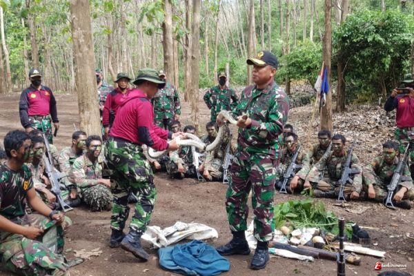 Wakil Gubernur Akademi Angkatan Laut (Wagub AAL), Laksma TNI Rudi Aviantara, S.E.,M.Si.,M.Tr (Han) meninjau Taruna AAL Tingkat lll Angkatan ke-68 Korps Marinir yang tengah menjalani Latihan Praktek Pendidikan Komando (Lattek Dikko) angkatan ke-166 Tahap Hutan di Perkebunan PTPN XII Selogiri, Ketapang, Kec. Kalipuro, Kab. Banyuwangi, Jawa Timur (12/9).