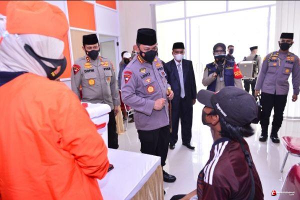 Kapolri Jenderal Listyo Sigit Prabowo menghadiri peresmian gedung baru asrama putri Pondok Pesantren Assalam sekaligus melakukan peninjauan vaksinasi massal dalam serangkaian kunjungan kerjannya di Sukabumi, Jawa Barat, Senin (13/9/2021).