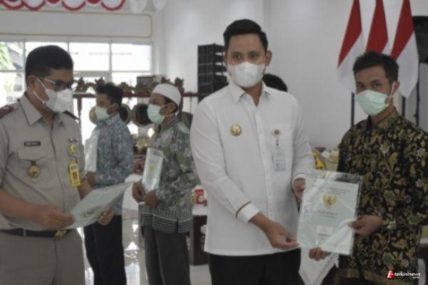 Penyerahan dilakukan secara simbolis kepada 30 orang dan langsung diserahkan oleh Bupati Kendal Dico M. Ganinduto, sedangkan sisanya akan diberikan secara bertahap
