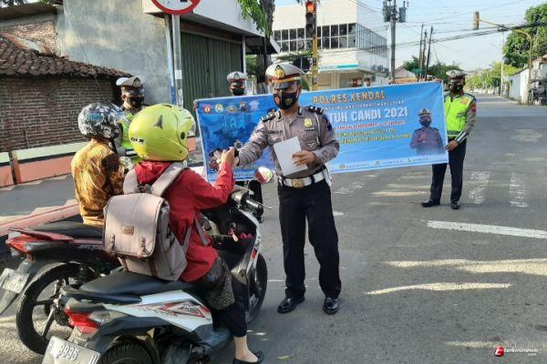 Ops Patuh Candi 2021 Dikmas Lantas Polres Kendal Bagikan Brosur Peduli Keselamatan