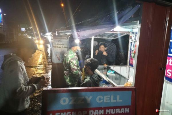 Personel Babinsa Koramil 09 Blado tetap melaksanakan patroli dan pengawasan dalam rangka meningkatkan kesadaran masyarakat untuk mematuhi protokol kesehatan Covid-19, di Jalan Raya Pasar Blado, Kecamatan Blado, Kabupaten Batang, Kamis (23/9/21) malam.