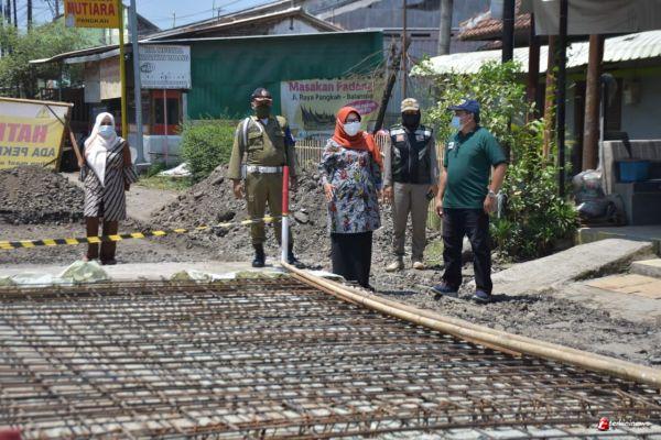 TEGAL – Usai menerima kunjungan Menteri Koperasi dan UKM RI, Bupati Tegal Umi Azizah melanjutkan agendanya meninjau pelaksanaan proyek perbaikan jalan konstruksi beton sepanjang 110 meter di Desa Bogares, Kecamatan Pangkah, Sabtu (25/09/2021) siang. Hadir mendampingi orang nomor satu di Kabupaten Tegal tersebut Kepala Dinas Pekerjaan Umum (DPU) Kabupaten Tegal Hery Suhartono.