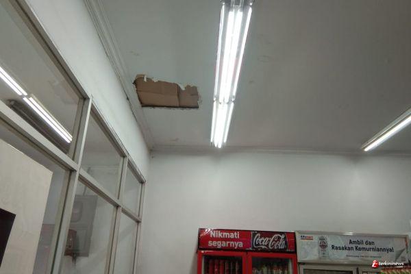Diketauhi oleh karyawan Alfamart pada saat buka pintu di pagi hari pkl 06.00 Wib. Ketika masuk karyawan sangat terkejut melihat plafonnya jebol dan di lantai terlihat kececeran pecahan plafon.