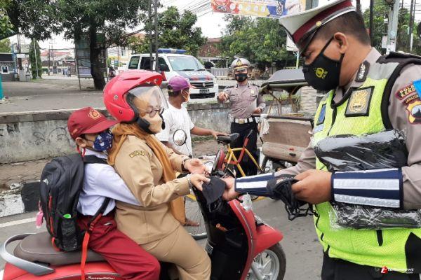 Simpatik Dan Humanis Sat Lantas Polres Kendal Bagikan Masker Gratis Pada Ops Patuh Candi 2021