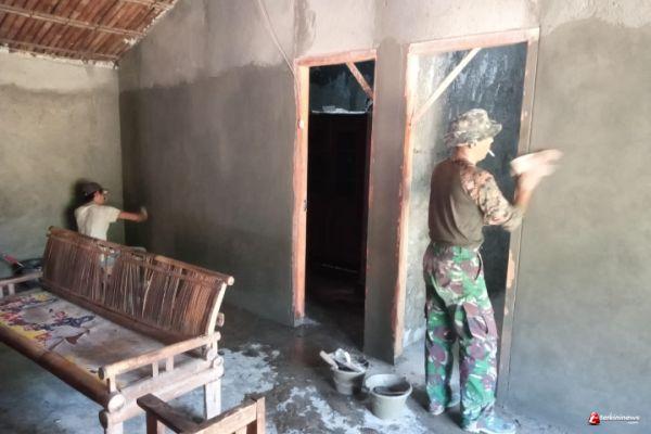 Seperti salah satu rumah penerima RTLH milik Khatmono di Dukuh Wonokriyo, Desa Gerlang, Kecamatan Blado, Kabupaten Batang, pada saat ini sudah masuk tahap plester yang dikerjakan secara gotong royong oleh TNI dan warga, Selasa (28/9/21)