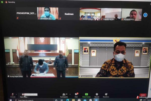 LINGGA - Pemerintah Kabupaten Lingga, menggelar rapat paripurna pengesahan Rancangan APBD Perubahan Tahun Anggaran 2021 menjadi APBD Perubahan yang berlangsung secara virtual, Kamis (30/09). Adapun Paripurna yang dipimpin langsung oleh Ketua DPRD Lingga, sepakat APDB Perubahan yang disahkan sebesar Rp974 miliar lebih.