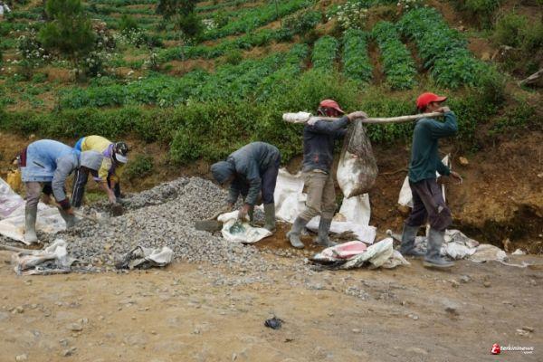 Mengangkut material secara manual memang membutuhkan tenaga ekstra, tapi karena posisi letak material ke sasaran tidak memungkinkan untuk di angkut dengan kendaraan terpaksa kita pikul bersama-sama, sehingga pada saat pengecoran semua bahan sudah siap di tempat dan pekerjaan pun tetap lancar," ucapnya.