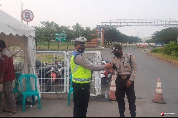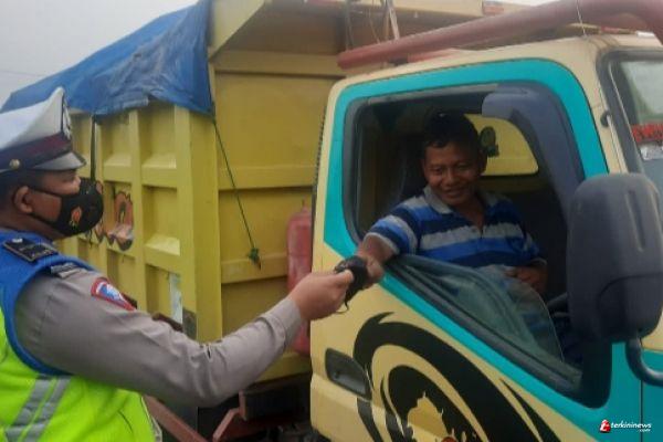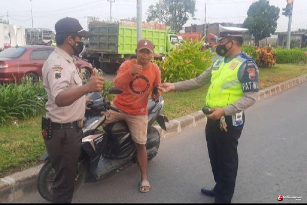 Dalam kegiatan tersebut petugas kepolisian menyampaikan imbauan tertib berlalu lintas serta imbauan disiplin protokol kesehatan dalam rangka antisipasi penyebaran virus Corona.