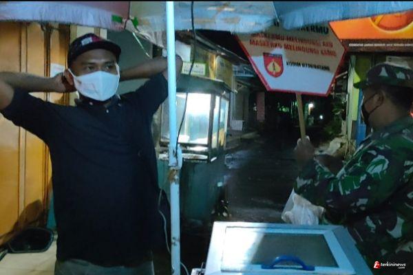 Melalui Peltu Arifin Danramil 06/Tersono menyampaikan, kegiatan ini dilakukan pada waktu malam hari sekitar pukul 20.00 Wib diwilayah Kecamatan Tersono, dengan sasaran para pedagang kakilima dan warga yang tidak memakai masker saat melakukan aktifitas diluar rumah.