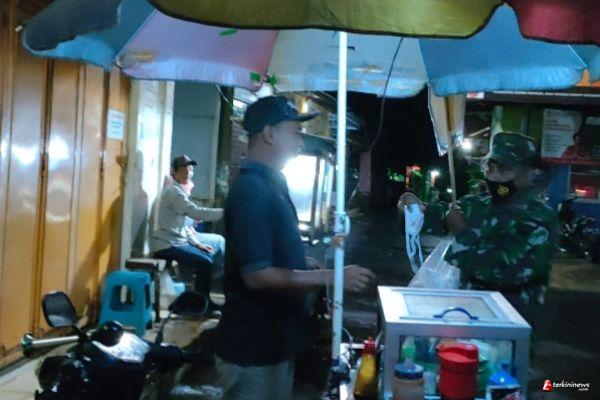 Babinsa Bagikan Masker Ke Pedagang Kaki Lima