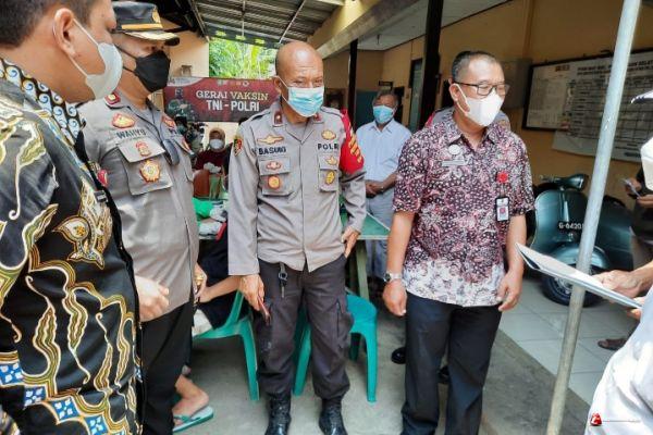 Kapolres Pekalongan Kota AKBP Wahyu Rohadi S.I.K dan Walikota Pekalongan A Afzan Arslan Djunaid Dandim Pekalongan diwakilkan Komandan Koramil setempat meninjau langsung pelaksanaan vaksinasi massal.