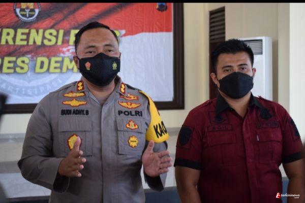 Kapolres Demak, AKBP Budi Adhy Buono dalam konferensi pers memberikan klarifikasi tentang duduk perkara yang sebenarnya, Rabu (13/10).
