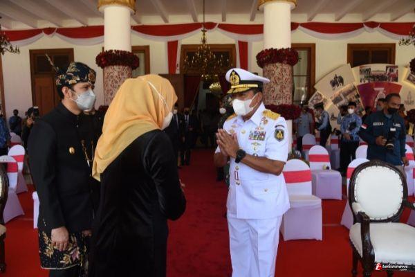 Sekretaris Lembaga Akademi Angkatan Laut (Seklem AAL), Laksamana Pertama TNI Samsul Rizal, S.E., M.M, mewakili Gubernur AAL, Mayjend TNI (Mar) Nur Alamsyah, S.E., M.M., M.Tr (Han) menghadiri Upacara Perngatan Puncak Hari Jadi ke-76 Jawa Timur yang digelar di Halaman Gedung Negara Grahadi, Surabaya, Rabu (13/10).