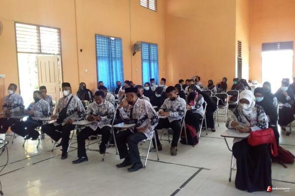 LINGGA - Pengurus Cabang Persatuan Guru Republik Indonesia (PGRI) Kecamatan Lingga mengelar Bimtek pemantapan PTK yang berlangsung 15-17 Oktober 2021 di Aula SMA Negeri 1 Lingga, Senin (18/10/2021). Kegiatan ini diadakan dalam rangka HUT PGRI ke-76.