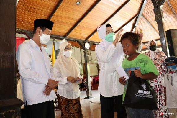 Bupati Brebes Hj Idza Priyanti SE MH dan Ketua Baznas Provinsi Jawa Tengah KH Ahmad Darodji memberikan santunan secara simbolis.