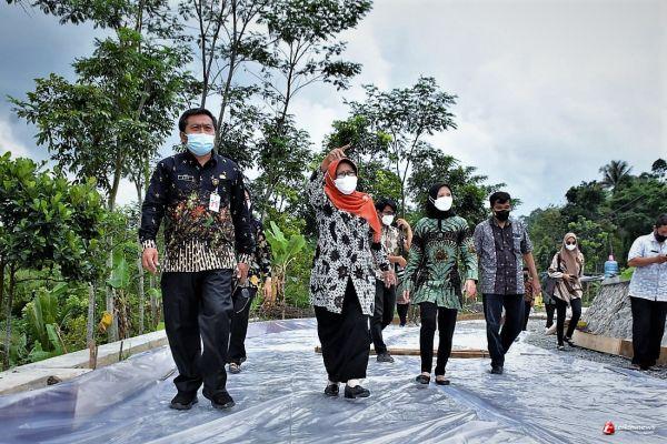 TEGAL – Usai memimpin upacara peringatan Sumpah Pemuda 2021, Bupati Tegal Umi Azizah melanjutkan agendanya meninjau pelaksanaan pekerjaan konstruksi jalan beton sepanjang 240 meter di ruas Jejeg-Cenggini, Kecamatan Bumijawa, Kamis (28/10/2021) siang. Hadir mendampingi orang nomor satu di Kabupaten Tegal tersebut Kepala Dinas Pekerjaan Umum (DPU) Kabupaten Tegal Hery Suhartono.