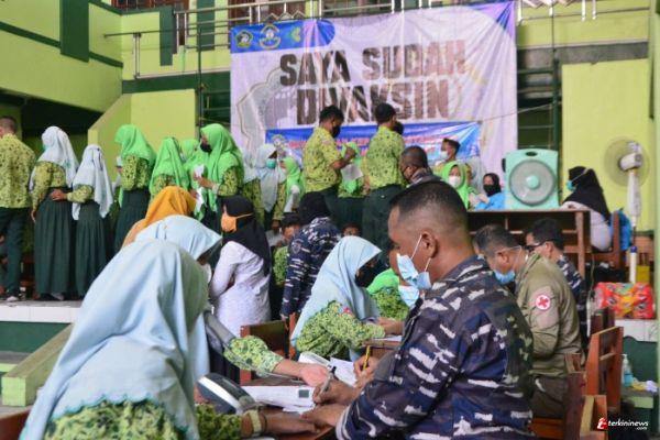 TNI AL terus kebut pelaksanaan program Vaksinasi Maritim dengan mengerahkan satuan satuannya di seluruh Indonesia guna mendukung pemerintah dalam percepatan penanganan Covid-19, kali ini vaksinator Akademi Angkatan Laut (AAL) menyasar ratusan siswa SMP Hasyim Azhari dan SMK Persatuan I di Jalan Raya Kepadangan No. 36 Tulangan Sidoarjo, Jawa Timur, kamis (28/10).