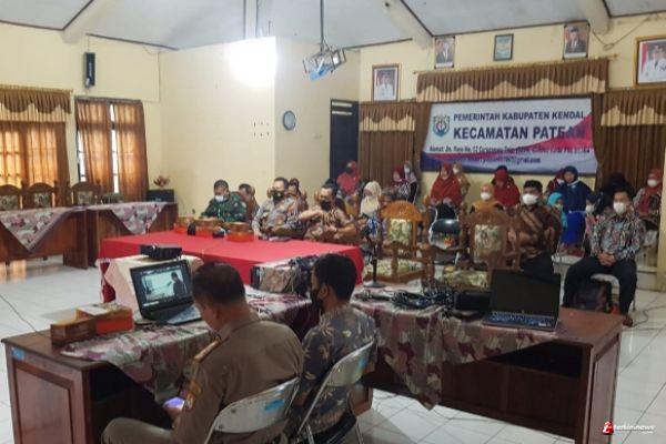 Kapolsek Patean IPTU Budijanton SH bersama Danramil Patean diwakili Serda Budiyono melaksanaan pengecekan, pemantauan dan monitoring pelaksanaan zoom meting bersama forkompimda tentang pengawasan sistem pembelajaran PTM (Pembelajaran Tatap Muka) bagi siswa SD, MI, TK dan PAUD dimasa PPKM level 2 di Aula Kecamatan Patean, Kamis (4/11/2021).