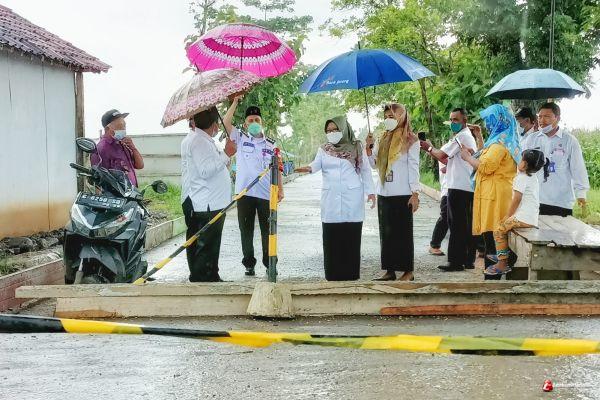 TEGAL – Disela kunjungan monitoring vaksinasi Covid-19 ke sejumlah desa, Bupati Tegal Umi Azizah tinjau pelaksanaan pekerjaan kontruksi jalan beton ruas Kendayakan-Warureja, Rabu (03/11/2021) siang. Progres pekerjaan pembetonan jalan sepanjang 560 meter tersebut dinilai lamban. Sebab, dari target waktu pengerjaan yang seharusnya sudah mencapai 52,01 persen, baru terselesaikan 22,41 persen.
