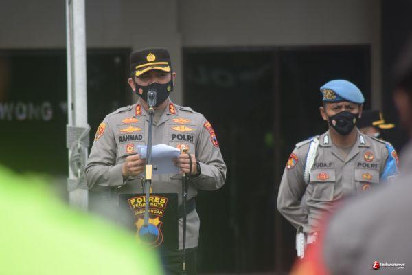 TEGAL - Kepala Kepolisian Resor Tegal Kota AKBP Rahmad Hidayat, S.S memimpin Apel kesiapsiagaan dalam rangka tanggap darurat penanggulangan bencana alam bertempat di halaman Mapolres, Senin (8/11/2021) pagi.