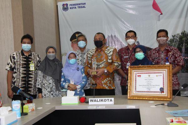 TEGAL - Kota Tegal terima penghargaan Top Inovasi Terpuji (TOP 45) Kompetisi Inovasi Pelayanan Publik (KIPP) Klaster Kota tahun 2021 dari Kementerian Pemberdayaan Aparatur Negara dan Reformasi Birokrasi (KemenPANRB).